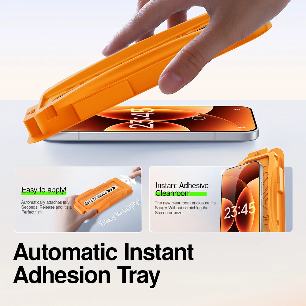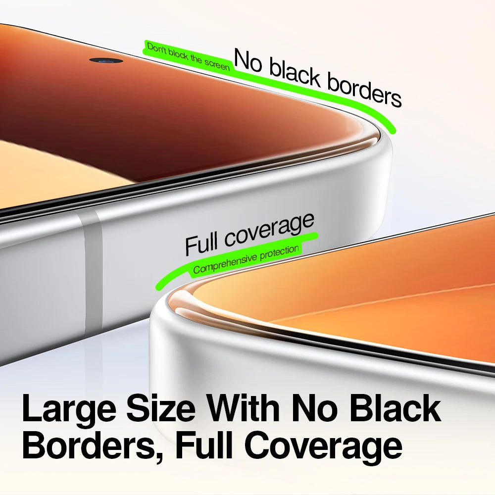 Randloses HD Schutzglas mit Staubschutz-Kabine – Anti-Fingerabdruck