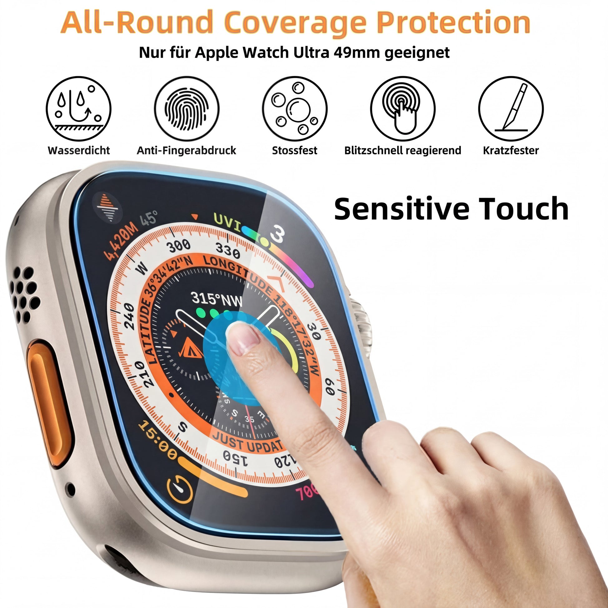 Schutzglas Apple Watch Ultra 1 2 3 49mm HD & Privacy 9H mit Einbauhilfe
