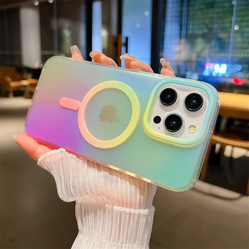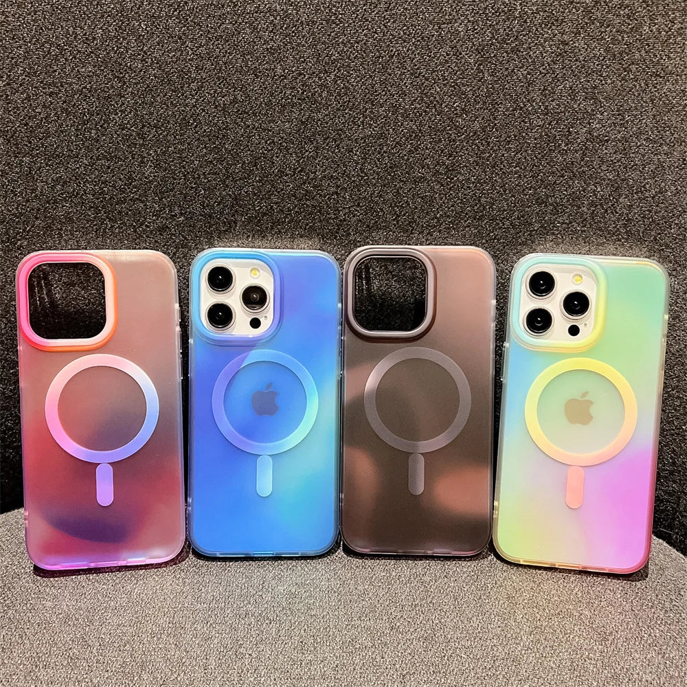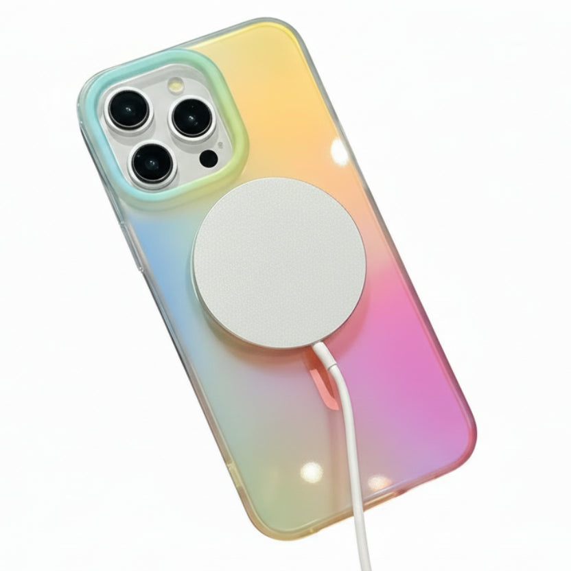 Diese atemberaubende Aurora-Gradient-Hülle vereint einen faszinierenden Laser-Regenbogen-Effekt mit praktischer Magnet-Funktionalität. Das matte Finish sorgt für ein elegantes Erscheinungsbild, während das innovative magnetische Lanyard-System für sicheren Halt unterwegs sorgt. Perfekt für alle, die Stil und Funktion kombinieren möchten.